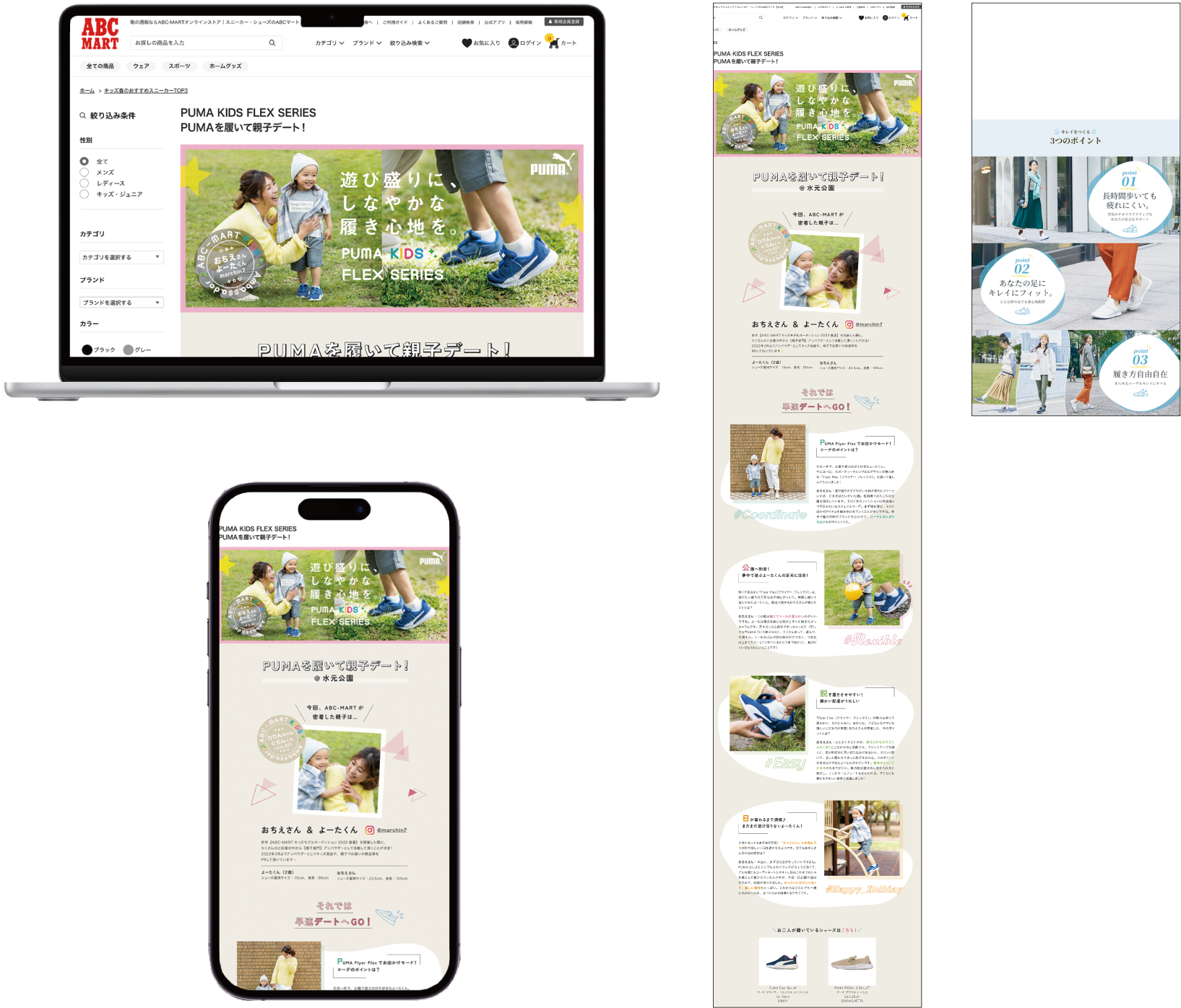 各ブランドの特色と、ABC MARTの特色を掛け合わせることで、「憧れ」と「手が届く」という二律背反を共存させるコミュニケーションを設計。